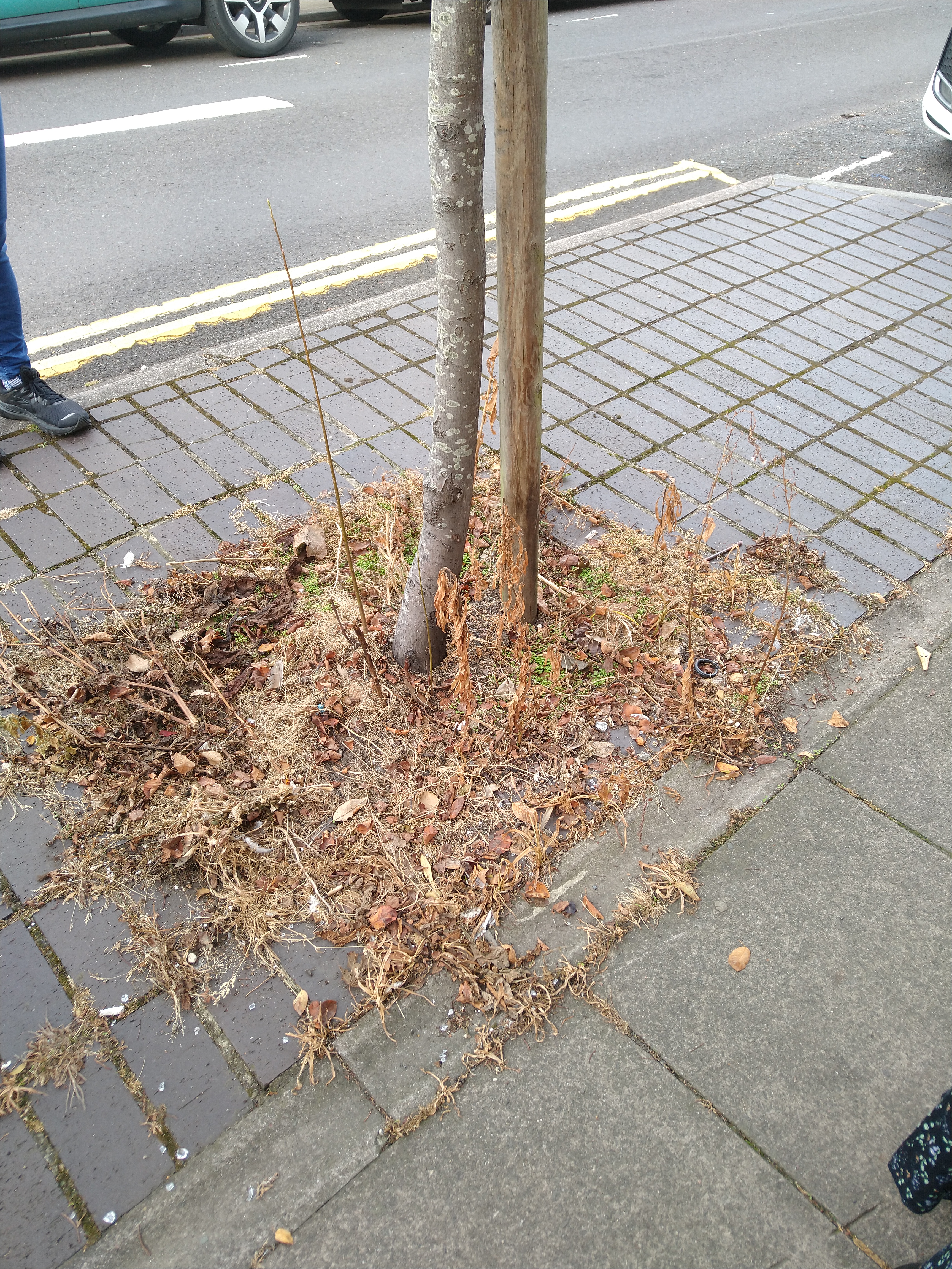 We much preferred this beautiful planted tree pit in Inglis Road to this one sprayed by pesticide: