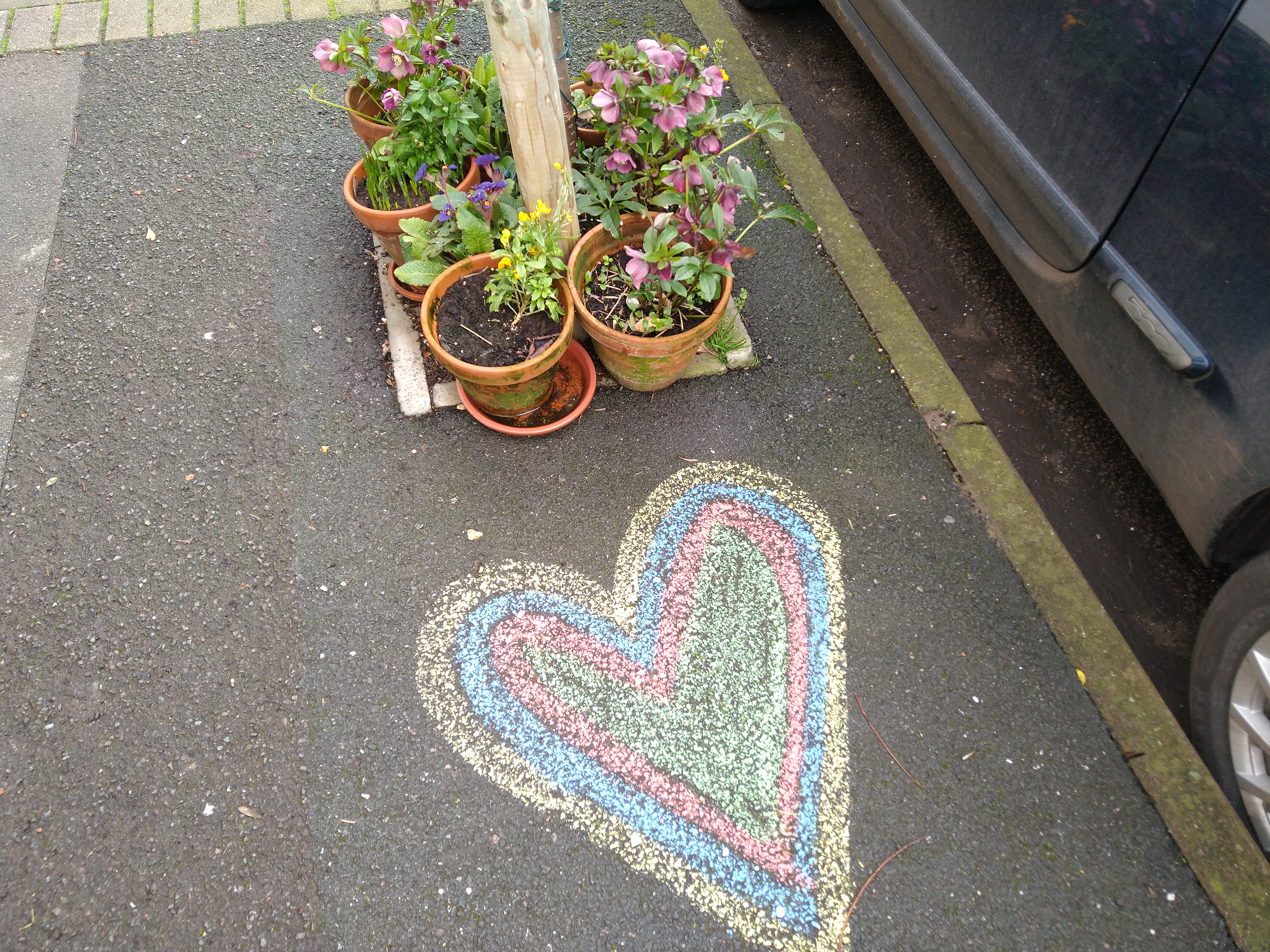 - Whenever you see something you like (eg daffodils, a lovely tree, weeds growing in a crack in the pavement, a colourful hanging basket or plant pot, an insect, a bird) put your heart next to it and take a photo with your phone.